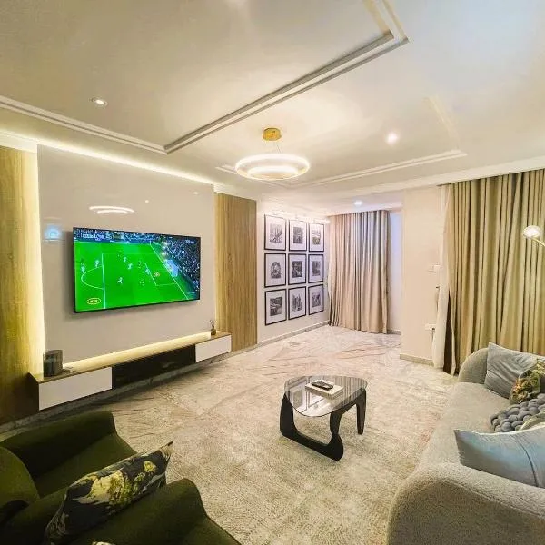 PrimeNest位于阿布贾,提供私人泳池。这家空调住宿距离阿布贾魔术岛有11公里,为客人提供免费WiFi,内部提供私人停车位。 这家公寓提供露台,享有花园景,配有2间卧室、起居室、平板电视、带迷你吧的设施齐全的厨房以及4间带热水浴池的浴室。这家公寓也为客人提供4间浴室。 这家公寓距离IBB高尔夫俱乐部有12公里。纳姆迪·阿齐基韦国际机场距离住宿有36公里。