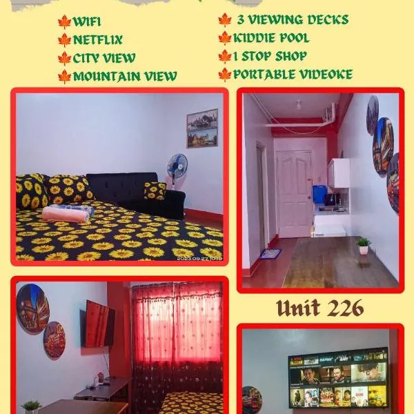 26 GARDEN Deck with a VIEW坐落于安蒂波洛,享有山景,距离SM超级购物中心有13公里,距离香格里拉广场有14公里。这家住宿距离亚诺尼拉智能体育馆有12公里,为客人提供免费WiFi,内部提供私人停车位。 这家空调公寓拥有1间卧室,配有1间带坐浴盆、淋浴设施和免费洗浴用品的浴室。这家公寓配备市景,也配备有线频道平板电视、小厨房和1间浴室。