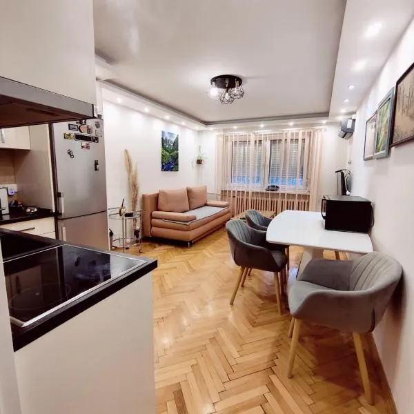Sonja apartment享有花园景,配备露台和阳台,距离斯宾斯体育中心约有16分钟步行路程。这家公寓提供免费WiFi,距离海滨长廊购物中心有1.7公里,距离Serbian National Theatre有4分钟步行路程。 这家空调公寓配有2间卧室、起居室、带冰箱和电热水壶的设施齐全的厨房以及1间带淋浴设施和吹风机的浴室。这家公寓还提供平板电视以及1间带拖鞋的浴室。