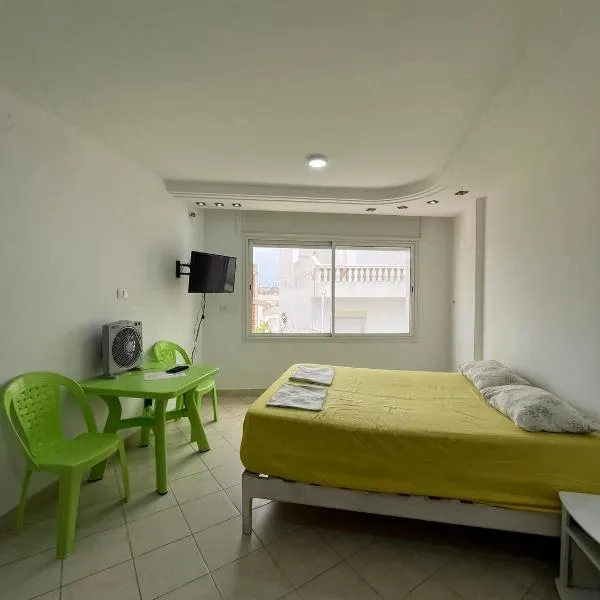 Résidence ezzahra坐落于Kelibia,距离埃扎拉海滩(Ezzahra Beach)有7分钟步行路程,配备免费WiFi和免费私人停车位。 这家旅馆的客房提供衣柜、平板电视、私人浴室、床上用品和毛巾。Résidence ezzahra的部分房间享有海景。每间客房都配有电热水壶。所有客房为客人提供冰箱。 突尼斯-迦太基机场距离住宿有114公里。