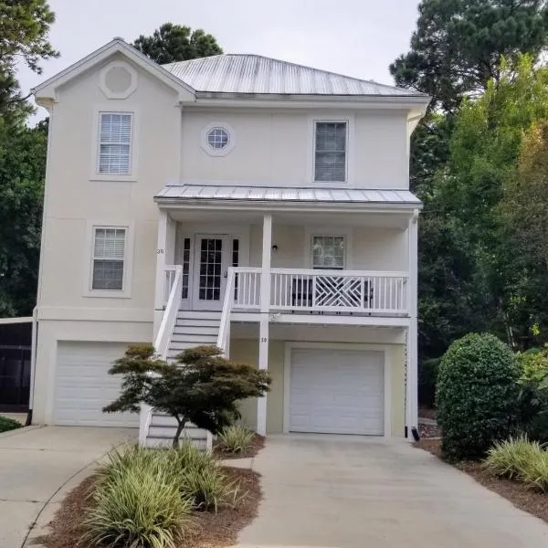 Serenity in Paradise位于希尔顿黑德岛,提供带免费WiFi的花园景客房,配备季节性室外泳池和露台。这家自助式别墅配有私人泳池、花园和免费私人停车位。 这家空调别墅配有2间卧室、起居室、带冰箱和咖啡机的设施齐全的厨房以及2间带淋浴设施和免费洗浴用品的浴室。2间浴室配有浴缸,也提供吹风机,提供毛巾和床上用品。 这家别墅配备儿童游乐场。 萨凡纳河机场距离住宿有1公里。