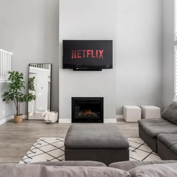 Family-Friendly 3-Story Home Sleeps 8坐落于American Fork,享有花园景,配有客房、私人泳池和阳台。这家住宿距离盐宫有50公里,配备露台和免费私人停车位。 这家空调度假屋配有1间独立卧室、设施齐全的厨房以及3间浴室。这家度假屋也配备3间浴室。 这家度假屋距离感恩角有11公里。普罗沃市机场距离住宿有26公里。