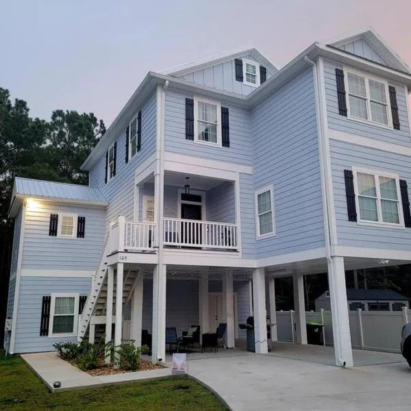 Pawleys Island Retreat - Golf Cart Included!位于帕瓦雷斯岛,提供空调客房、庭院和免费WiFi,距离帕利斯岛(Pawleys Island)有16分钟步行路程,距离加登城码头有23公里。这家度假屋距离默特尔比奇木栈道有38公里,距离默特尔比奇会议中心有40公里。