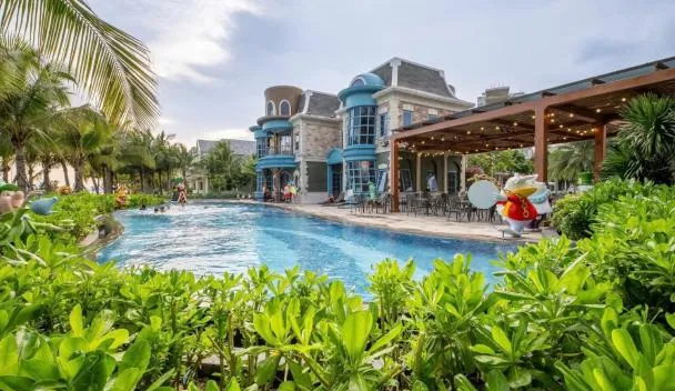 Villa Hồ Tràm Hồ bơi riêng cao cấp - Resort Santuary Hồ Tràm享有池景,提供户外游泳池、私家海滩和餐厅,距离关凯洞海滩(Quan Cay Duong Beach)约有2分钟步行路程。这家自助式别墅配有私人泳池、花园、烧烤设施、免费WiFi和免费私人停车位。