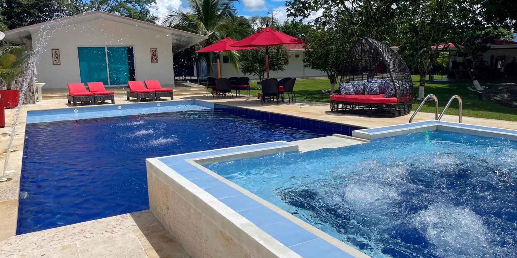 La Chagra VIP - Glamping en Villavicencio坐落于比亚维森西奥,提供酒吧。这家住宿配备免费WiFi,还拥有户外游泳池、花园和露台。 这家豪华帐篷提供免费私人停车位。 La Chagra VIP - Glamping en Villavicencio提供热水浴池。 前锋机场距离住宿有9公里。