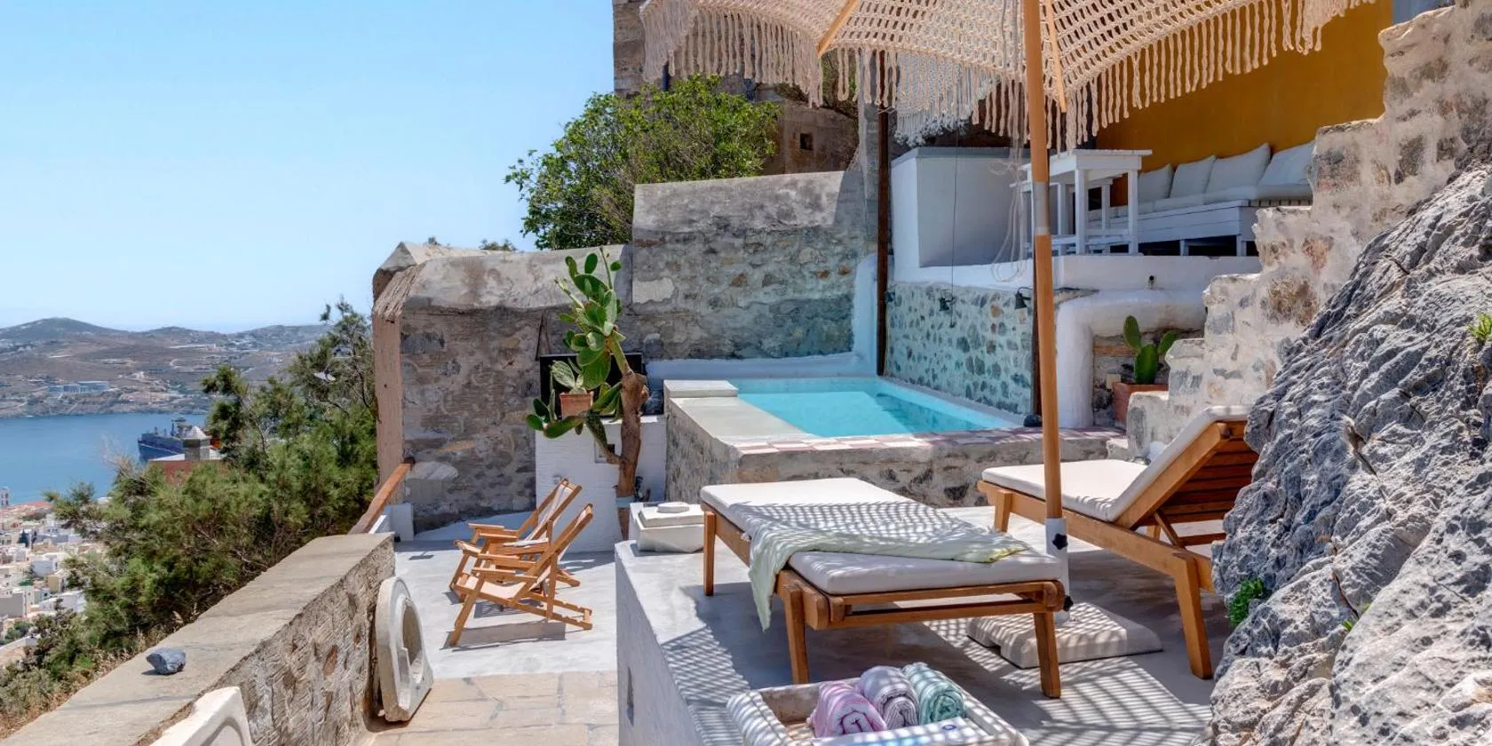 Villa Cycladic View Syros位于阿佐里姆诺斯,配备带免费WiFi的市景客房,配有户外游泳池、花园和共用休息室。这家别墅提供免费私人停车位和共用厨房。 这家空调别墅配有5间卧室、起居室、带冰箱和咖啡机的设施齐全的厨房以及3间带坐浴盆和淋浴设施的浴室。3间浴室配有热水浴池,也配有免费洗浴用品,提供毛巾和床上用品。 这家别墅的客人可以使用热水浴池。