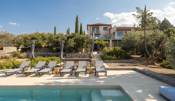 Kanfis villa with panoramic view位于加拉希德松,配备带免费WiFi的市景客房,配有季节性室外泳池、花园和露台。这家住宿提供私人泳池和免费私人停车位。 这家空调公寓配有3间卧室、起居室、带冰箱和咖啡机的设施齐全的厨房以及2间带淋浴设施和吹风机的浴室。这家公寓还提供平板电视、休息区以及2间带浴缸的浴室。 这家公寓距离超级卡拉法蒂斯海滩(Super Kalafatis...