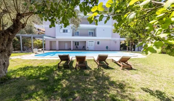 Askalosia villa坐落于阿约斯耶奥伊欧斯,距离艾迪普索斯温泉仅有30公里,提供户外游泳池、共用休息室和共用厨房。这家自助式度假屋拥有私人泳池、花园、烧烤设施、免费WiFi和免费私人停车位。 这家度假屋配有4间卧室、3间浴室、床上用品、毛巾、平板电视、用餐区、设施齐全的厨房以及海景露台。这家空调度假屋还配备休息区、洗衣机以及3间带淋浴设施和热水浴池的浴室。...