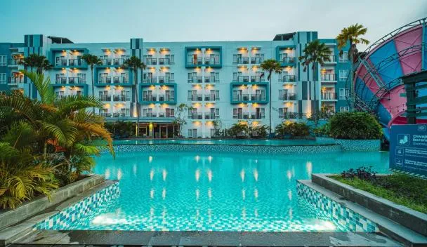 Astara Hotel Balikpapan位于巴厘巴板,距离巴塔坎体育场有15公里,提供户外游泳池、免费私人停车位、健身中心和花园。住宿提供各种设施,包括共用休息室、酒吧和水上运动设施。住宿配备24小时前台、机场交通服务、儿童俱乐部以及免费WiFi。 这家酒店为客人提供空调客房,配有书桌、电热水壶、冰箱、迷你吧、保险箱、平板电视、露台以及带淋浴设施的私人浴室。Astara Hotel...