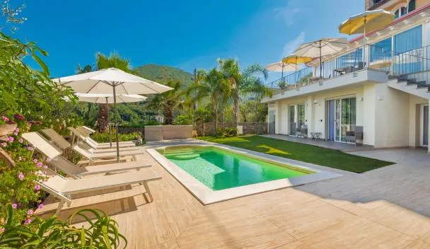 Villa Amaranta享有池景,配备季节性室外泳池和阳台,距离Castello San Giorgio约有5.8公里。这家自助式别墅配有私人泳池、花园、烧烤设施、免费WiFi和免费私人停车位。 这家别墅配备6间卧室、7间浴室、床上用品、毛巾、平板电视、用餐区、设施齐全的厨房以及海景露台。这家空调别墅还提供休息区、洗衣机以及7间带坐浴盆和淋浴设施的浴室。