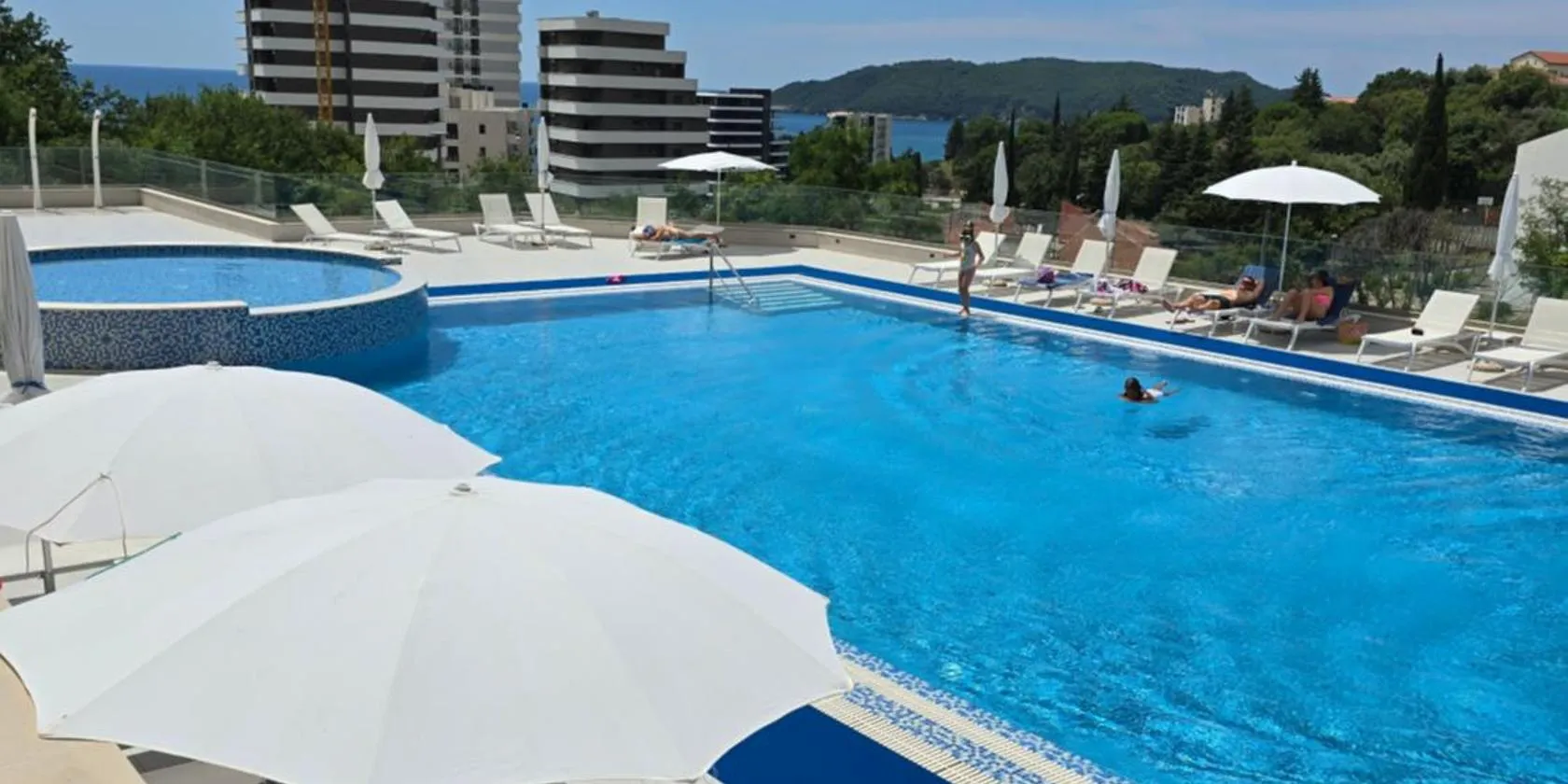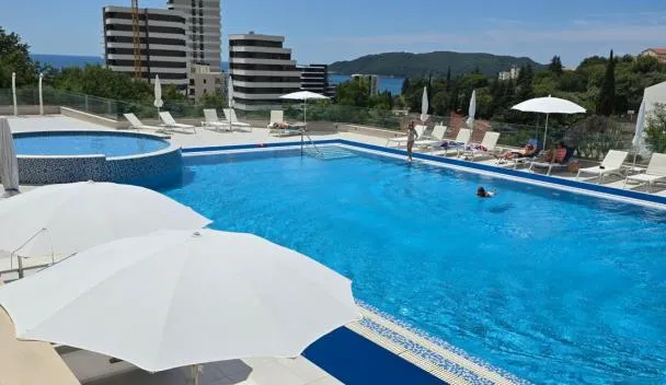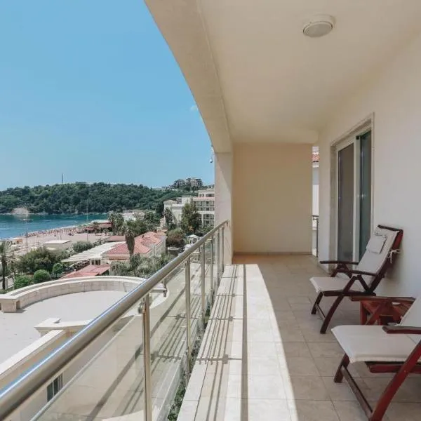 Skyline resort CG坐落于布德瓦,享有市景,提供餐厅、行李寄存处、酒吧、花园、按季节开放的室外泳池和露台。住宿配备免费WiFi,内部提供私人停车位。 这家公寓享有海景,为客人提供阳台、休息区、卫星频道平板电视、带冰箱和炉灶的设施齐全的厨房以及带淋浴设施和免费洗浴用品的私人浴室。 Skyline resort CG距离贝西奇海滩有4分钟步行路程,距离圣斯特凡岛有6.7公里。