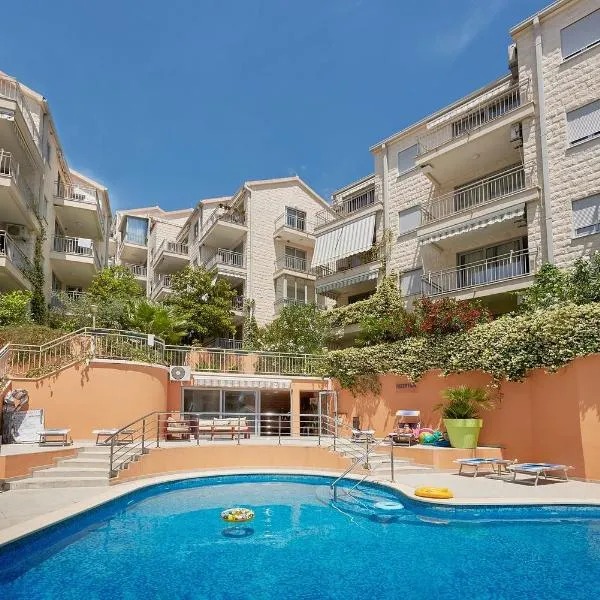 Apartments Grand坐落于斯韦蒂·斯特凡,配备免费WiFi、空调、季节性室外泳池和花园,距离圣斯特凡岛有3.5公里,距离巴尔港有30公里。内部提供私人停车位。 每间房间都提供庭院、带冰箱的设施齐全的厨房、带沙发床休息区、平板电视以及带淋浴设施和免费洗浴用品的私人浴室。部分房间拥有露台和/或市景或海景阳台。 这家住宿配备儿童游乐场和烧烤设施。客人可以在附近体验骑行。