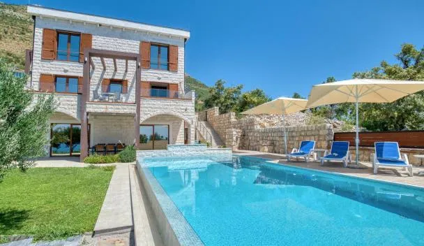 Mediterranean vacation home with pool Petrovac位于布德瓦,配备带免费WiFi的池景客房,配有季节性室外泳池、花园和露台。这家度假屋还拥有私人泳池。 这家空调度假屋配有3间卧室、起居室、带冰箱和电热水壶的设施齐全的厨房以及2间带淋浴设施和免费洗浴用品的浴室。2间浴室配有浴缸,也拥有吹风机,提供毛巾和床上用品。 这家度假屋提供烧烤设施。