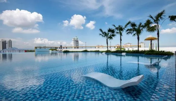 METROPOL SERVICED APARTMENT at Bukit Mertajam, Pulau Pinang位于大山脚,距离双威嘉年华购物中心有8.3公里,距离槟威大桥有13公里,提供免费WiFi以及带室外泳池的花园,享有市景。客人可以使用桑拿浴室和热水浴池。 部分房间提供池景阳台、设施齐全的厨房以及带淋浴设施的私人浴室。