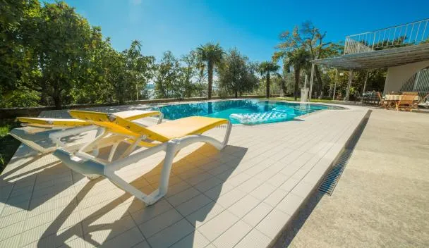 Villa EMI享有海景,提供季节性室外泳池和阳台,距离圣朱斯托城堡约有14公里。这家自助式别墅配有私人泳池、花园、烧烤设施、免费WiFi和免费私人停车位。 这家别墅享有市景,提供露台,配有3间卧室、起居室、卫星频道平板电视、设施齐全的厨房以及2间带坐浴盆和淋浴设施的浴室。2间浴室配有热水浴池,也提供吹风机,提供毛巾和床上用品。 这家别墅的客人可以使用热水浴池。
