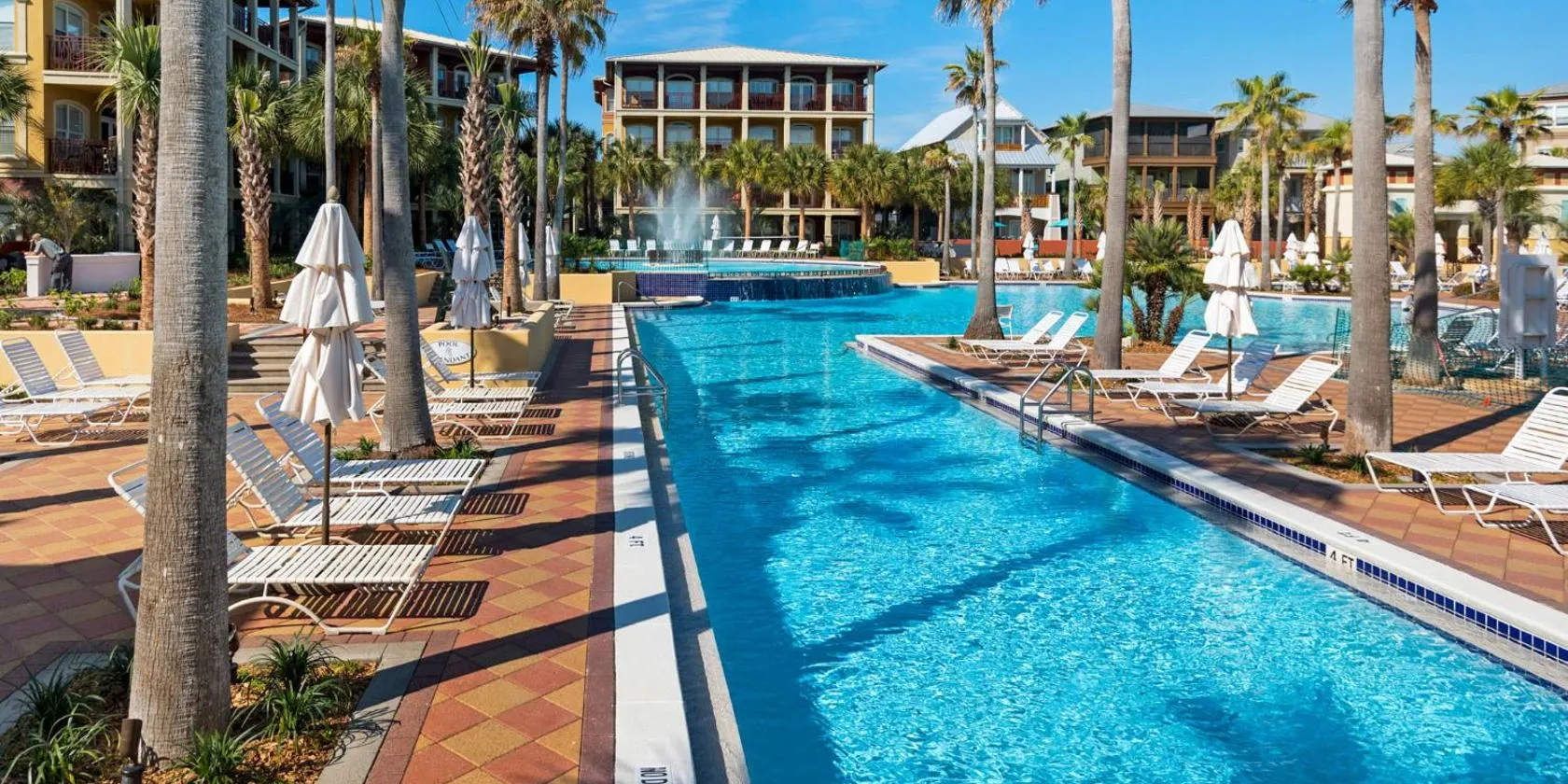 Shores of Panama is located on the shore of the Gulf of Mexico. Guests can take a refreshing plunge in one the onsite pools or unwind at the tiki bar.