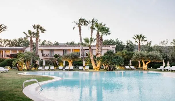 Baia Di Chia Resort Sardinia, Curio Collection By Hilton has an outdoor swimming pool, garden, a restaurant and bar in Chia. This 5-star resort offers room service and an ATM.
