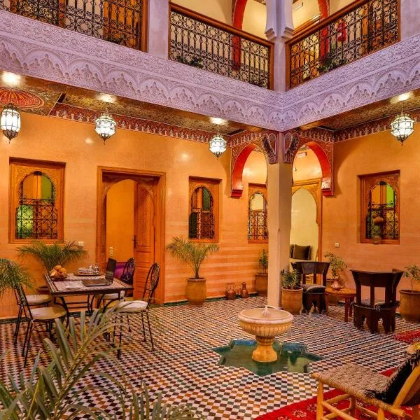 这家豪华的住宿加早餐酒店位于马拉喀什一幢18世纪的传统摩洛哥式建筑中。客人可以使用酒店的室外游泳池、桑拿浴室和蒸汽浴室;酒店距离Jamaâ El Fna Square广场有25分钟的步行路程。 Riad Kniza酒店的所有客房均采用传统的摩洛哥风格装饰,配有木雕家具、壁炉以及带吹风机的私人浴室。 Riad Kniza酒店于露台上或一间公共休息室的壁炉旁供应早餐。