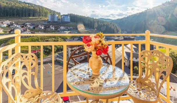 这家五星级酒店位于Bukovel Ski Resort滑雪胜地的喀尔巴阡山脉(Carpathian Mountains)中,提供1个spa中心、1个室内游泳池、1间桑拿浴室、1个健身房以及免费无线网络连接。 宽敞典雅的空调客房采用现代风格装饰,提供明亮的暖色调内饰。每间客房均设有1台平面电视、1个迷你吧以及1间带浴袍和吹风机的私人浴室。阳台俯瞰着风景如画的喀尔巴阡山脉(Carpathian...