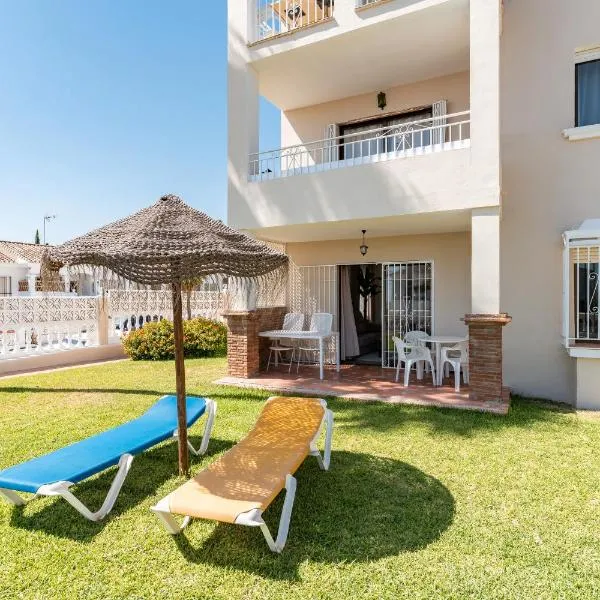 Estudio Glamuroso cerca de la playa en Mijas Costa位于马拉加,享有花园景,提供户外游泳池、花园、私家海滩、露台和酒吧。住宿提供免费WiFi。 所有空调房间均配有私人浴室、平板电视、设施齐全的厨房和阳台。