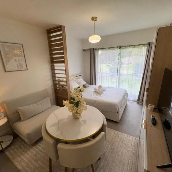 Le petit Paris Compiegne坐落于贡比涅,享有市景,距离夏利地区有40公里,距离阿斯特里克游乐园有43公里。这家公寓距离马的生活博物馆有45公里,距离Chantilly Forest有48公里。 这家公寓配有1间卧室、起居室、带冰箱和咖啡机的设施齐全的厨房以及1间带淋浴设施和免费洗浴用品的浴室。这家公寓也配备休息区和1间浴室。