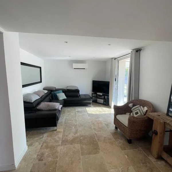 Haut de villa rénovée en 2023位于Saint-Maime,提供带免费WiFi的市景客房,配有免费自行车、露台和水上运动设施。这家公寓配备免费私人停车位。客人可以在周边地区体验徒步、骑马和迷你高尔夫等活动。 这家空调公寓配有3间卧室、起居室、带冰箱和咖啡机的设施齐全的厨房以及1间带淋浴设施和吹风机的浴室。这家公寓也提供休息区和1间浴室。