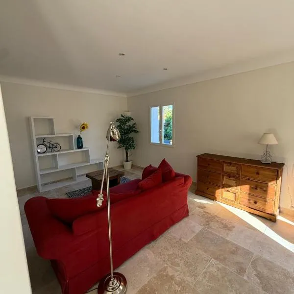 Bas de villa avec jardin - Centre ville et Plage à pied位于圣马克西姆,提供露台,享有花园景,距离Chateau de Grimaud有13公里,距离Le Pont des Fées有13公里。这家住宿距离中央海滩(Central Beach)有不到一公里,提供花园和免费私人停车位。
