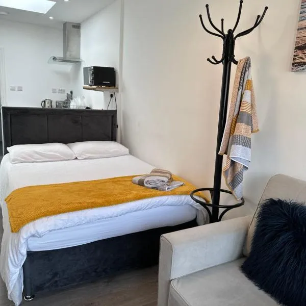 Luxury Ensuite Studio In Crayford Dartford Bexley London With Full Kitchen And Side Garden Alleyway Entrance坐落于Slades Green,距离蓝水购物中心有10公里,配备免费自行车、免费私人停车位和花园。这家住宿提供家庭间和儿童游乐区。旅馆也提供免费WiFi和付费机场接驳服务。