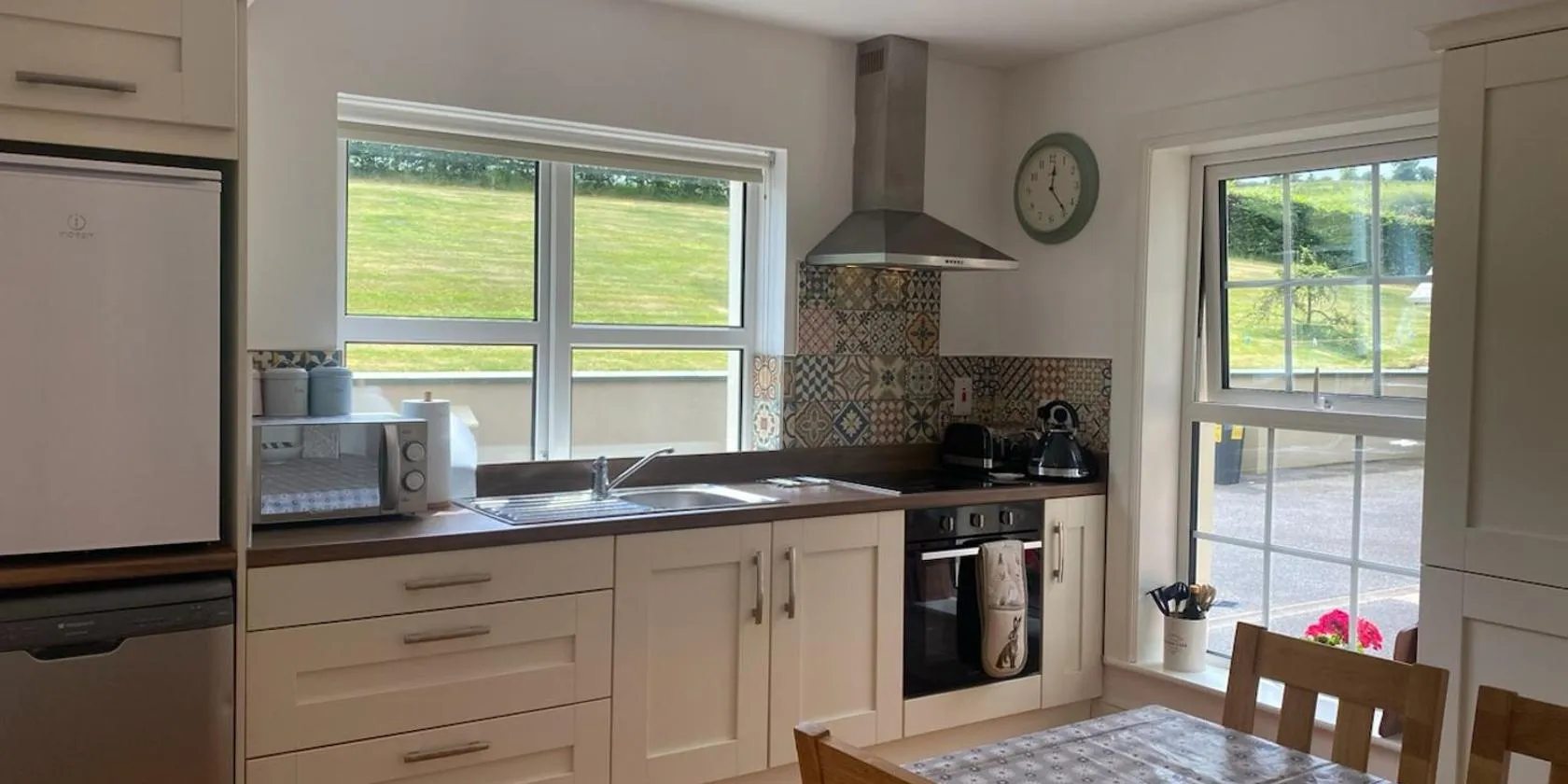 Sleek modern design - 2 bed apartment in Donegal Town位于多尼戈尔,距离巴罗剧院有26公里,距离纳林波特努高尔夫俱乐部有42公里,距离拉福城堡有42公里。住宿距离多尼戈尔高尔夫俱乐部有14公里,提供免费WiFi和商务中心。 这家公寓配有1间卧室、起居室、带冰箱和电热水壶的设施齐全的厨房以及1间带浴缸或淋浴设施和吹风机的浴室。