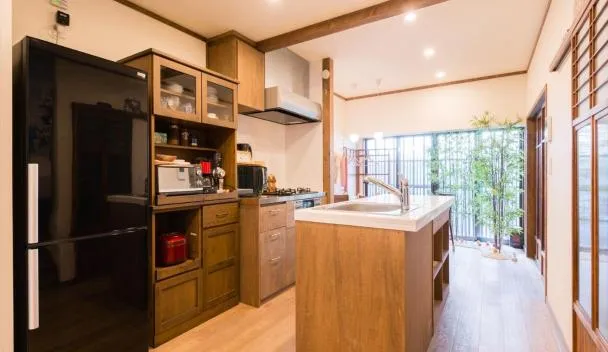 京一軒町家染SEN五条一貫町Gojo-Ikkannmachi坐落于京都,距离Kyoto Shigaku Kaikan Conference Hall有12分钟步行路程,距离中心800米,配备免费WiFi、花园和空调住宿。内部提供私人停车位。 每间房间都配有市景阳台、有线频道平板电视、用餐区、设施齐全的小厨房以及带淋浴设施、免费洗浴用品和吹风机的私人浴室。住宿还配备冰箱、微波炉、炉灶和电热水壶。