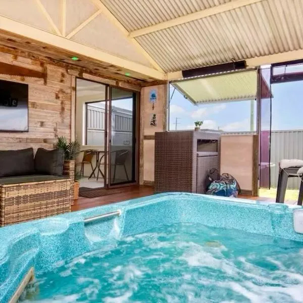 Villa Maris - Pet Friendly with Spa & Fire Pit坐落于新南威尔士的卡拉拉海滩,配有露台。这家自助式度假屋拥有花园、烧烤设施、免费WiFi和免费私人停车位。 这家度假屋享有花园景,配有4间卧室以及3间带免费洗浴用品和吹风机的浴室。这家空调度假屋还配备平板电视、带冰箱的设施齐全的厨房、休息区、洗衣机以及3间带淋浴设施、热水浴池和浴缸的浴室。
