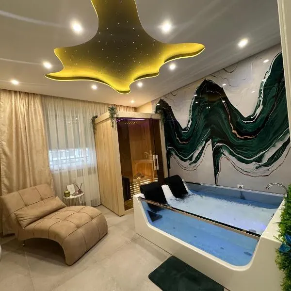 Spa Apartman Banja Luka位于巴尼亚卢卡。这家住宿距离Kastel Fortress有2.7公里,提供露台和免费私人停车位。 这家空调公寓配有1间卧室,配有1间带淋浴设施、热水浴池和吹风机的浴室。这家公寓提供阳台,也提供平板电视、厨房和1间浴室。 这家公寓的康体区提供桑拿房和热水浴池。 巴尼亚卢卡国际机场距离住宿有21公里。