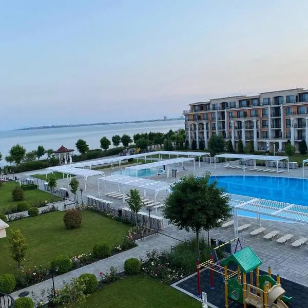 Sea View Apartment PRESTIGE FORT BEACH , PREMIER FORT BEACH坐落于圣弗拉斯的Yurta,距离圣弗拉斯海滩-西2(Sveti Vlas Beach - West 2)仅有2分钟步行路程,配有季节性室外泳池、花园、餐厅和酒吧。这家公寓配备带阳台的空调客房。