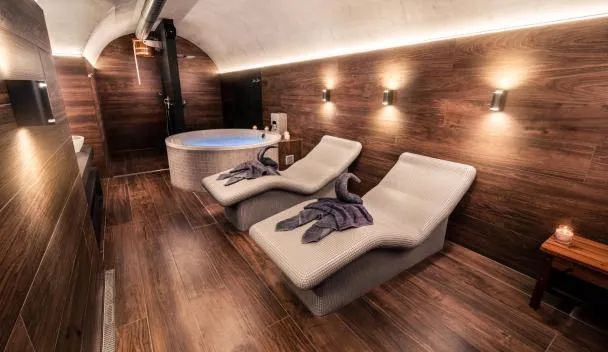 Hotel Kraví Hora酒店位于Bořetice,被葡萄园所环绕,内设私人葡萄酒窖、健康中心和休闲设施,可为客人提供各种美食选择。酒店各处均配备了免费WiFi。 Spa设施包括Spa浴缸、芬兰芳香桑拿浴室和海水蒸汽浴室,还提供按摩和身体护理服务。至于健身活动,酒店内拥有网球场、排球场和羽毛球场。 Kravi Hora...