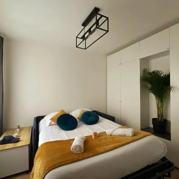 Appartement cosy et charme - 347坐落于鲁昂,地处正中心,配有spa浴缸。这家公寓提供免费WiFi,距离鲁昂主教座堂有6分钟步行路程,距离鲁昂右岸站有800米。 这家公寓配有1间卧室、起居室、带冰箱和咖啡机的设施齐全的厨房以及1间带热水浴池和免费洗浴用品的浴室。1间浴室配有浴缸,也配有吹风机,提供毛巾和床上用品。