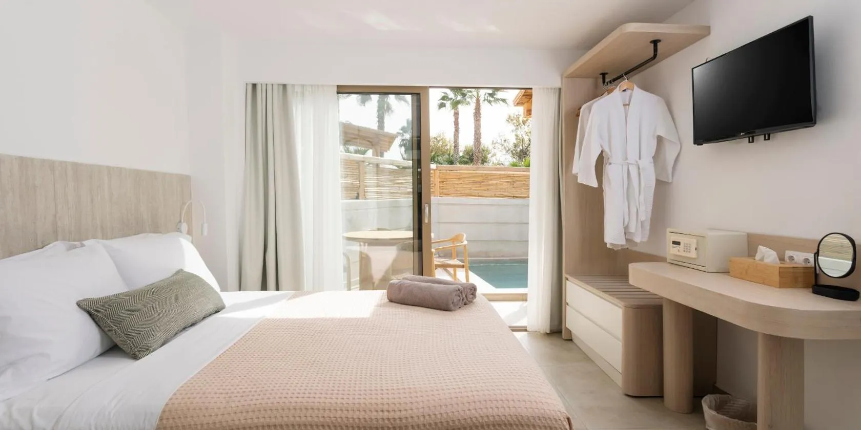 Situated in Agia Paraskevi, 1 km from Ani Beach, Zeus Eleva Ajul features accommodation with free bikes, free private parking, a seasonal outdoor swimming pool and a fitness centre.