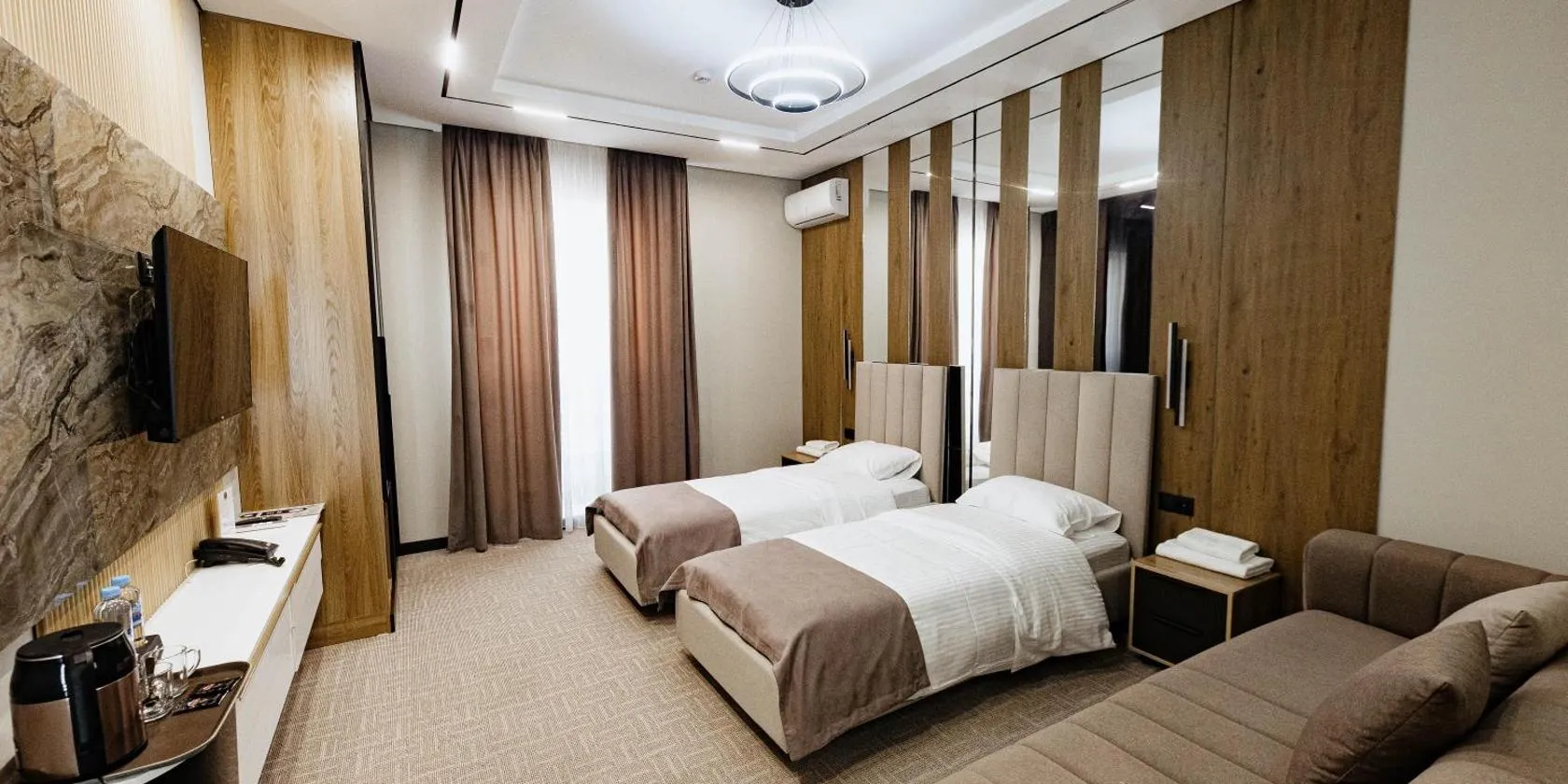 Турист位于塔拉兹,拥有带spa&康体中心的尊贵型住宿。这家住宿配有餐厅,还提供酒吧、室内泳池和桑拿房。这家酒店配备免费WiFi和免费私人停车位。 这家酒店的客房配有衣柜。Турист的所有客房均提供平板电视、空调以及配备淋浴设施和免费洗浴用品的私人浴室。部分客房还配备休息区。这家住宿的客房拥有床上用品和毛巾。 Турист的客人可以享用自助早餐。...