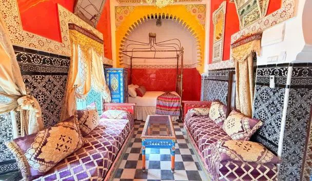 Riad Las Mil y una Noches Tetuan提供位于得土安的住宿。这家住宿配有客房服务,还为客人提供露台。住宿配备24小时前台、机场交通服务、共用休息室以及免费WiFi。 这家摩洛哥传统庭院为客人提供空调客房,配有书桌、咖啡机、保险箱、平板电视以及带淋浴设施的私人浴室。Riad Las Mil y una Noches Tetuan的所有客房都提供床上用品和毛巾。...