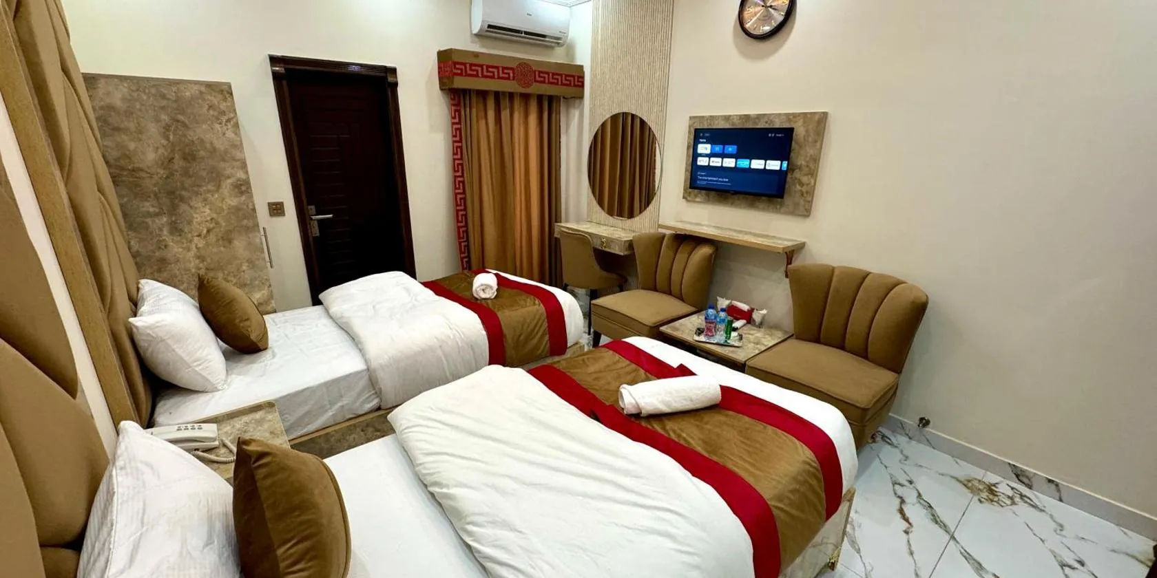 A recently renovated apartment situated in Lahore, Goldcrest - 1 Bedroom Luxury Apartment - Lahore features massage services.