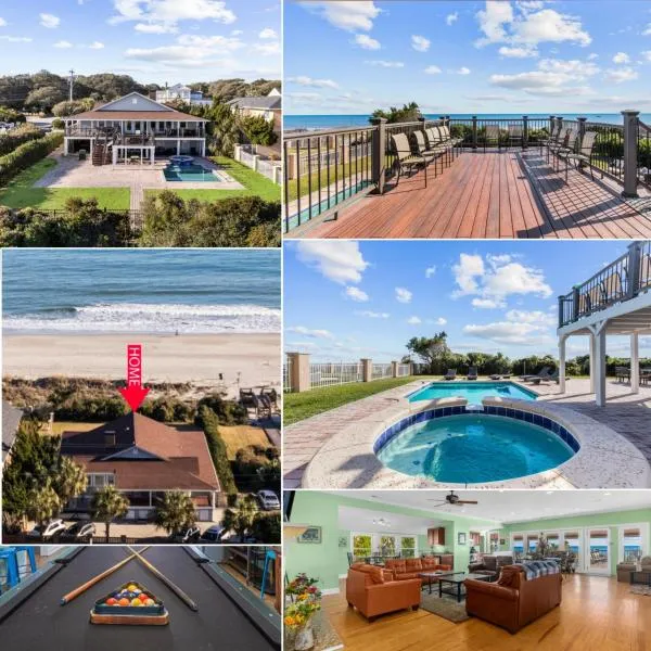 Posh Ocean Front: Huge Private Pool, Yard, Spa, Patio & Deck, BBQ, Game Room with 4 En-Suite Bathrooms坐落于默特尔比奇,靠近默特尔海滩(Myrtle Beach),配备自助式住宿、户外游泳池、自行车租赁、私人海滩、花园和露台。这家度假屋配有免费私人停车位。