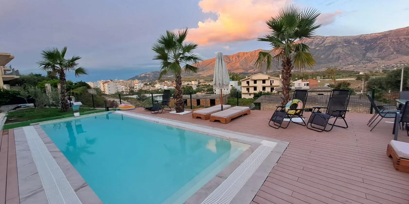Featuring air-conditioned accommodation with a private pool, mountain view and a patio, Matthews Beach House is set in Vlorë.