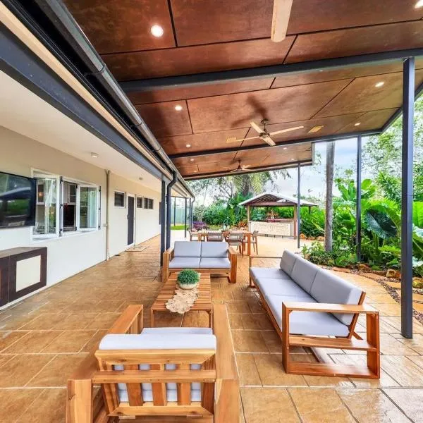 Reef Villa - A Sprawling Waterfront Oasis位于达尔文,提供户外游泳池和露台,距离木麻黄海滩(Casuarina Beach)有19分钟步行路程,距离北部地区博物馆及美术馆有11公里,距离达尔文植物园有11公里。这家自助式别墅配有私人泳池、花园、烧烤设施、免费WiFi和免费私人停车位。
