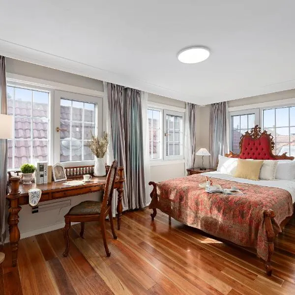Sunny Glebe Retreat Yard & Parking Pet Friendly坐落于悉尼,享有花园景,距离澳大利亚国家海事博物馆有2公里,距离星港城活动中心有1.9公里。这家自助式度假屋拥有花园、烧烤设施、免费WiFi和免费私人停车位。 这家空调度假屋配有2间卧室、起居室、带冰箱和咖啡机的设施齐全的厨房以及1间带淋浴设施和吹风机的浴室。这家度假屋也配有休息区和1间浴室。...