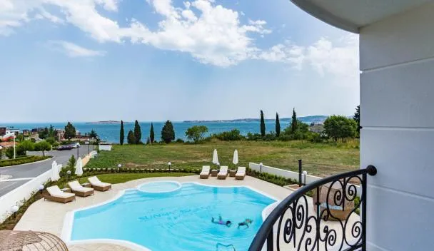 Boasting air-conditioned accommodation with a pool with a view, garden view and a patio, Sozopolis Cliffs Luxury Seaview Villa is situated in Sozopol.