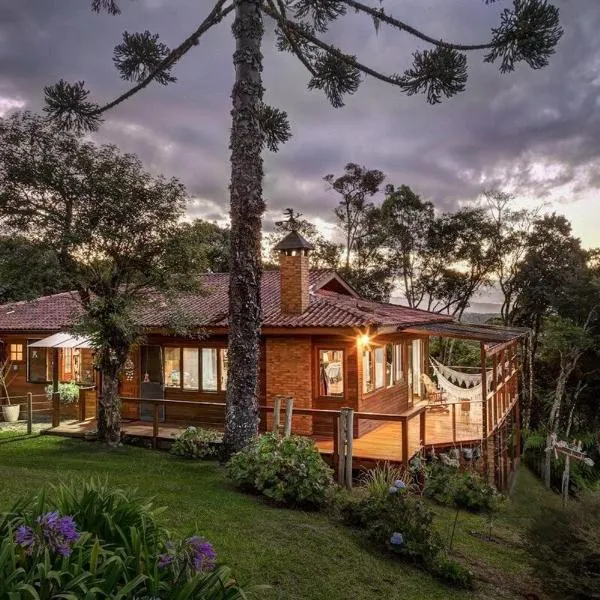 Colina das Araucárias Natureza Família serra坐落于圣卡塔琳娜州的兰舒凯马杜,配有阳台,享有山景。这家自助式度假屋拥有花园和免费私人停车位。 这家度假屋提供3间卧室、带冰箱和烤箱的厨房以及4间带浴缸、吹风机和洗衣机的浴室。这家度假屋也配有休息区和4间浴室。 弗洛里亚诺波利斯-埃尔西利·乌鲁兹机场距离住宿有79公里。