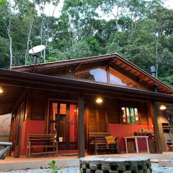 Cabana aconchegante na natureza位于兰舒凯马杜,享有山景,提供免费WiFi。这家自助式度假屋配有花园和免费私人停车位。 这家空调度假屋配有1间卧室、起居室、带冰箱和电热水壶的设施齐全的厨房以及1间带坐浴盆和淋浴设施的浴室。这家度假屋也提供休息区和1间浴室。 弗洛里亚诺波利斯-埃尔西利·乌鲁兹机场距离住宿有80公里。