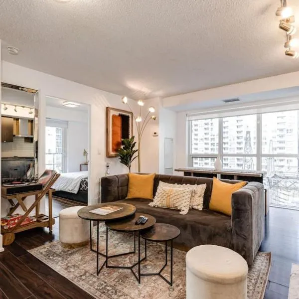 Stylish Condo Downtown by Rogers Centre位置很赞,位于多伦多中心,提供庭院。这家度假屋提供免费WiFi,距离汉兰角海滩(Hanlan's Point Beach)有17分钟步行路程,距离罗渣士中心有700米。 这家1卧室度假屋配有起居室、电视、带冰箱和洗碗机的设施齐全的厨房以及1间带吹风机的浴室。这家度假屋还配备洗衣机以及1间带浴缸的浴室。