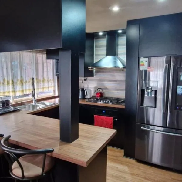 Cabañas Patagonia Kooch坐落于科伊艾科,提供露台和酒吧。这家自助式度假屋拥有花园和免费私人停车位。 这家空调度假屋配有2间卧室、起居室、带冰箱和咖啡机的设施齐全的厨房以及2间带淋浴设施和免费洗浴用品的浴室。这家度假屋还配备带有线频道的平板电视以及2间带浴缸的浴室。 前台工作人员会讲英语和西班牙语,可随时提供信息。 这家度假屋提供汽车租赁服务。...