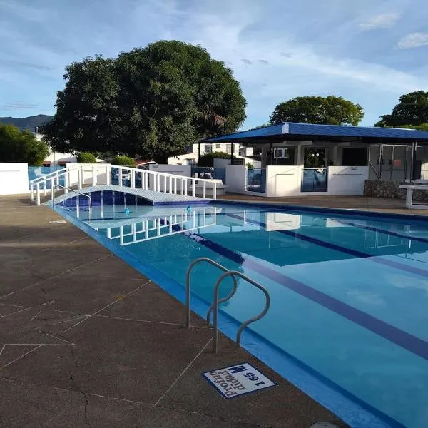 Condominio San Esteban - Flandes Tolima位于弗兰德斯,距离Piscilago乐园有25公里。客人可以使用热水浴池。这家住宿提供私人泳池和免费私人停车位。 这家4卧室度假屋提供带平板电视的起居室、设施齐全的厨房和3间浴室。这家度假屋也配备3间浴室。 这家度假屋配备室外泳池供客人使用。 伊瓦格机场距离住宿有57公里。