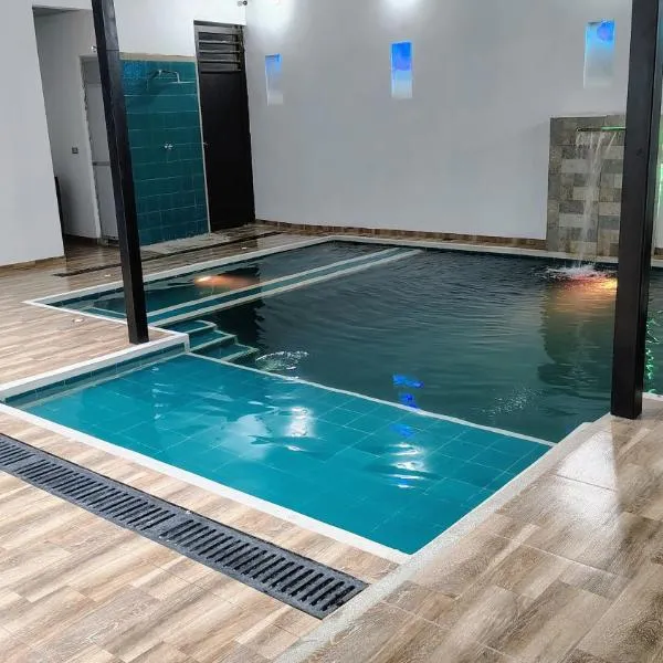 Kyüka - Ricaurte Cundinamarca享有池景,提供阳台,距离Piscilago乐园约有17公里。这家住宿提供私人泳池、免费WiFi和免费私人停车位。 这家空调度假屋配有5间独立卧室、带冰箱和洗碗机的设施齐全的厨房以及4间浴室。这家度假屋也为客人提供休息区和4间浴室。 这家度假屋提供儿童游乐区。客人可以使用Kyüka - Ricaurte Cundinamarca的室内泳池。...